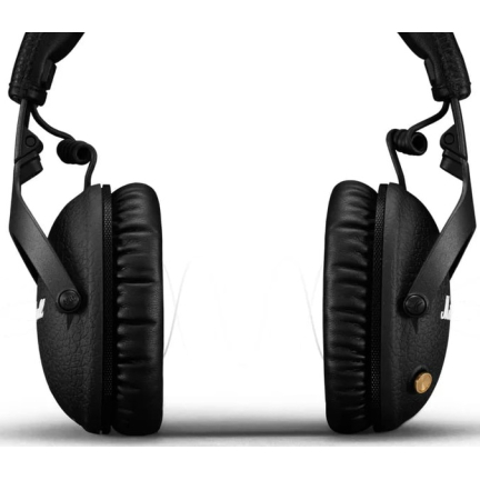 С первого взгляда Marshall Monitor II A.N.C. узнаются по фирменному дизайну — матовый корпус, мягкое оголовье и текстурированные чаши с логотипом Marshall будто говорят: «Звук — это стиль». Конструкция продумана до мелочей: амбушюры плотно прилегают к ушам, не давят, а оголовье равномерно распределяет нагрузку. Благодаря складному механизму наушники легко помещаются в рюкзак или кейс — удобно брать с собой в дорогу.