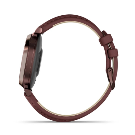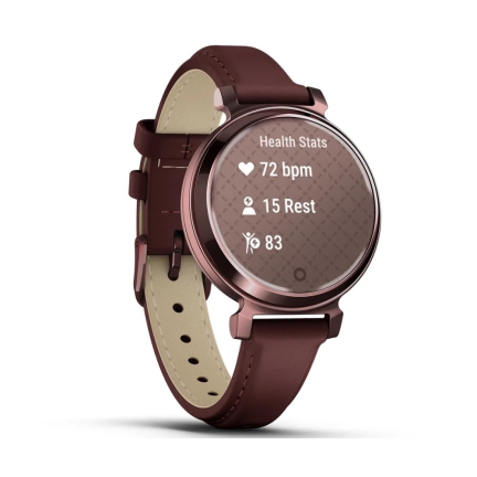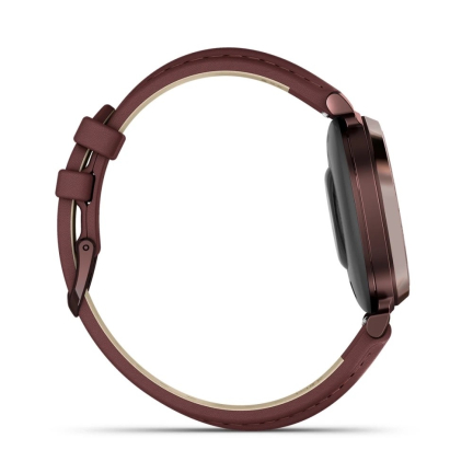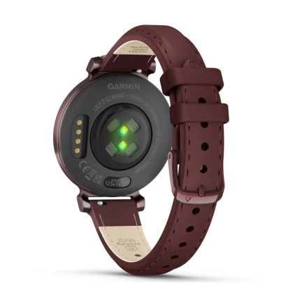 Garmin Lily 2 Classic встречает аккуратным, чуть более «взрослым» дизайном: корпус стал визуально строже, а узкие ремешки из обновлённой кожи сидят по-часычески мягко. В сравнении с первой Lily форма сохранилась, но стекло теперь чувствуется плотнее, а гравировка под ним — деталь, которая делает модель отличимой среди линейки. Габариты остались миниатюрными, так что часы по-прежнему воспринимаются как аксессуар, а не как гаджет с тяжёлым спортивным характером.
